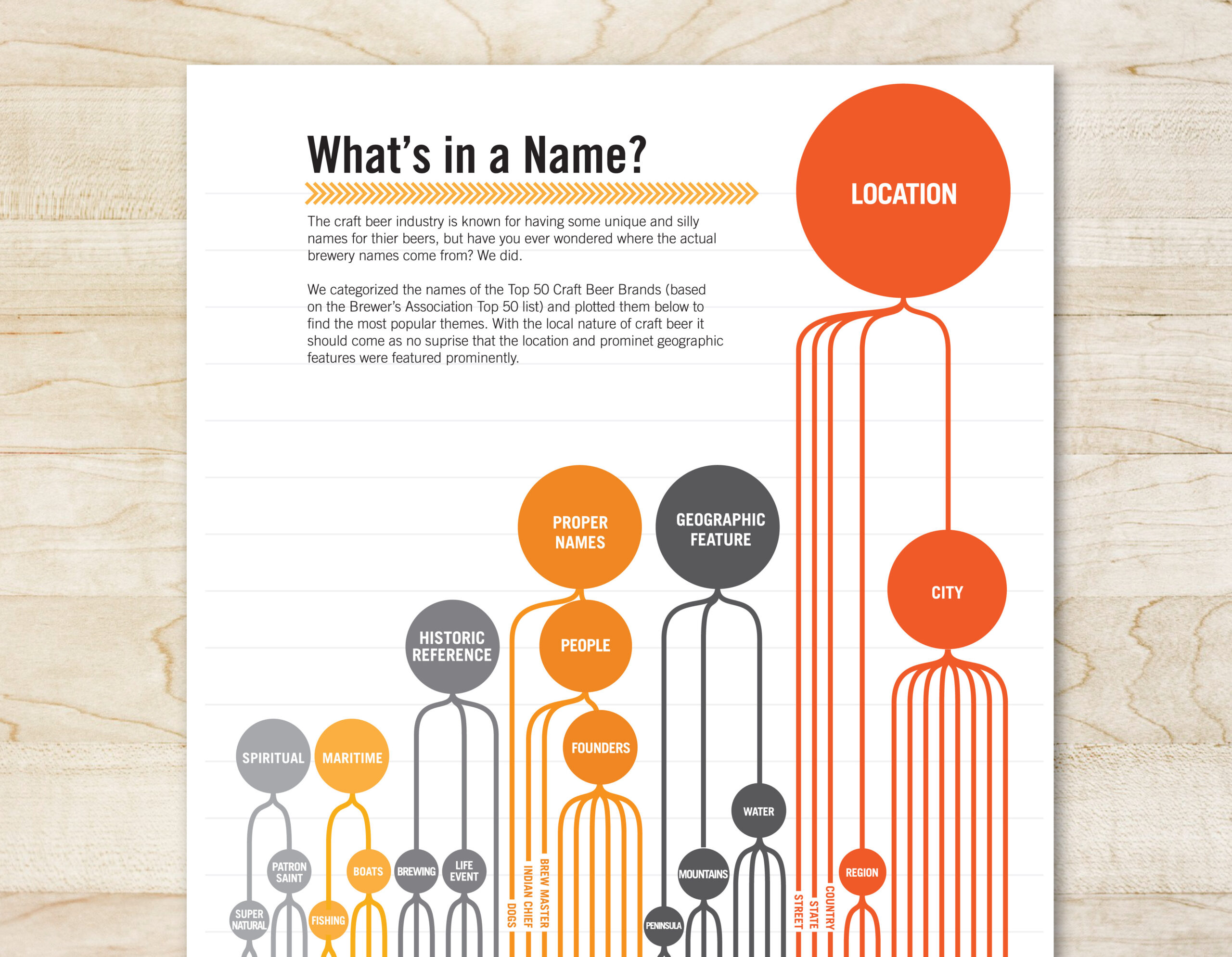 A visual story for Craft Beer & Brewing Magazine in which we categorized the names of the Top Craft Breweries (by production volume) to identify common themes.